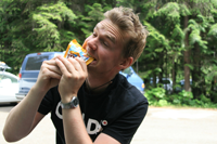 Tilbage ved bilen efter en, for os, lang vandretur var det tid til at glæde sig over endnu et af naturens vidundere, chokolade.