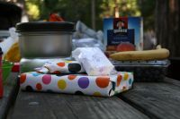 på en campingplads. Som det sig hør og bør, arrangeres i al hast et festmåltid af frugt og havregrød. En kop