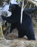 Et dambrug ligger helt ud til en fjord, hvor nogle af de sorte bjørne på øen kommer for at spise sidst på året når laksen søger tilbage til deres fødested for at yngle.